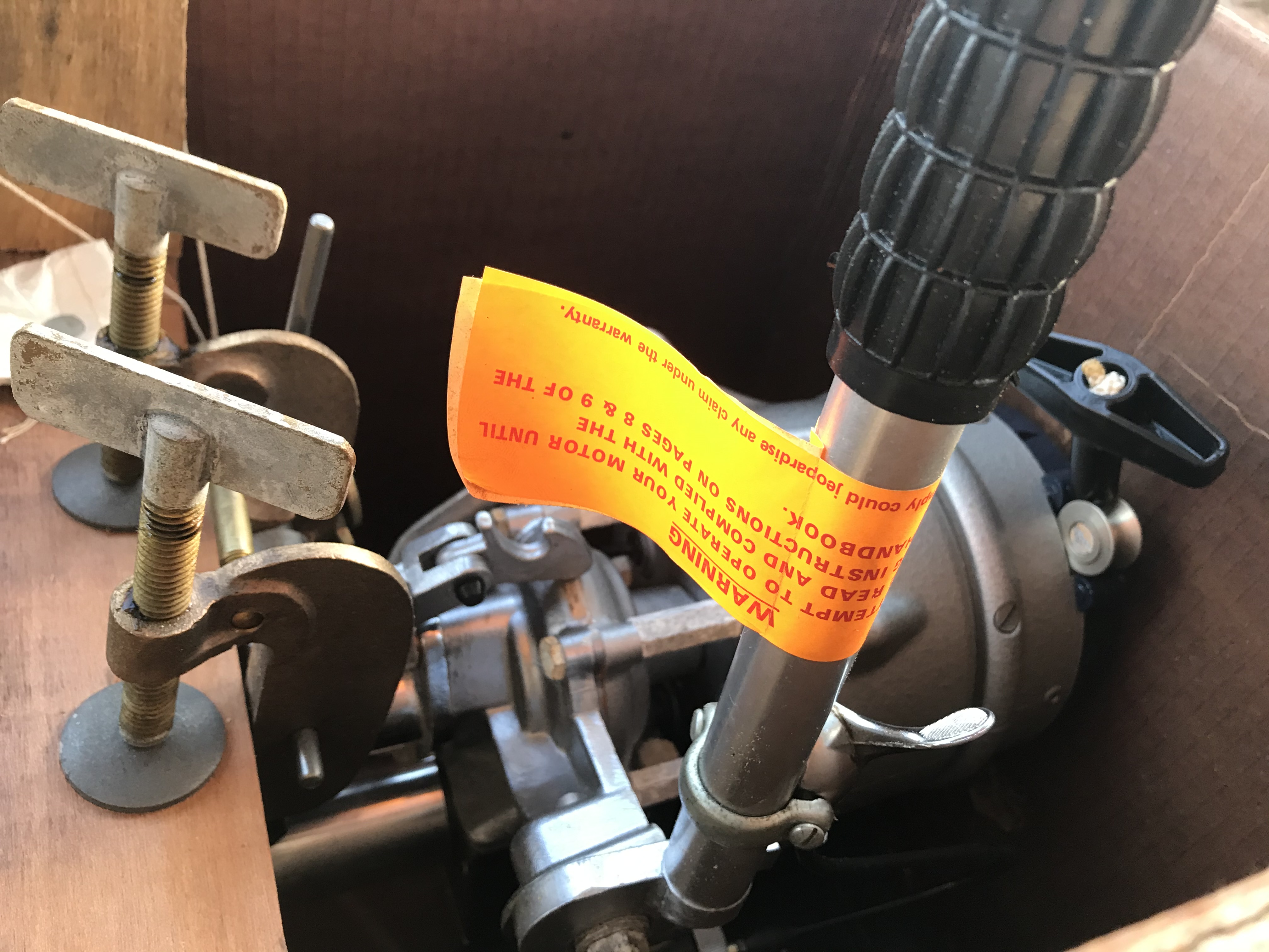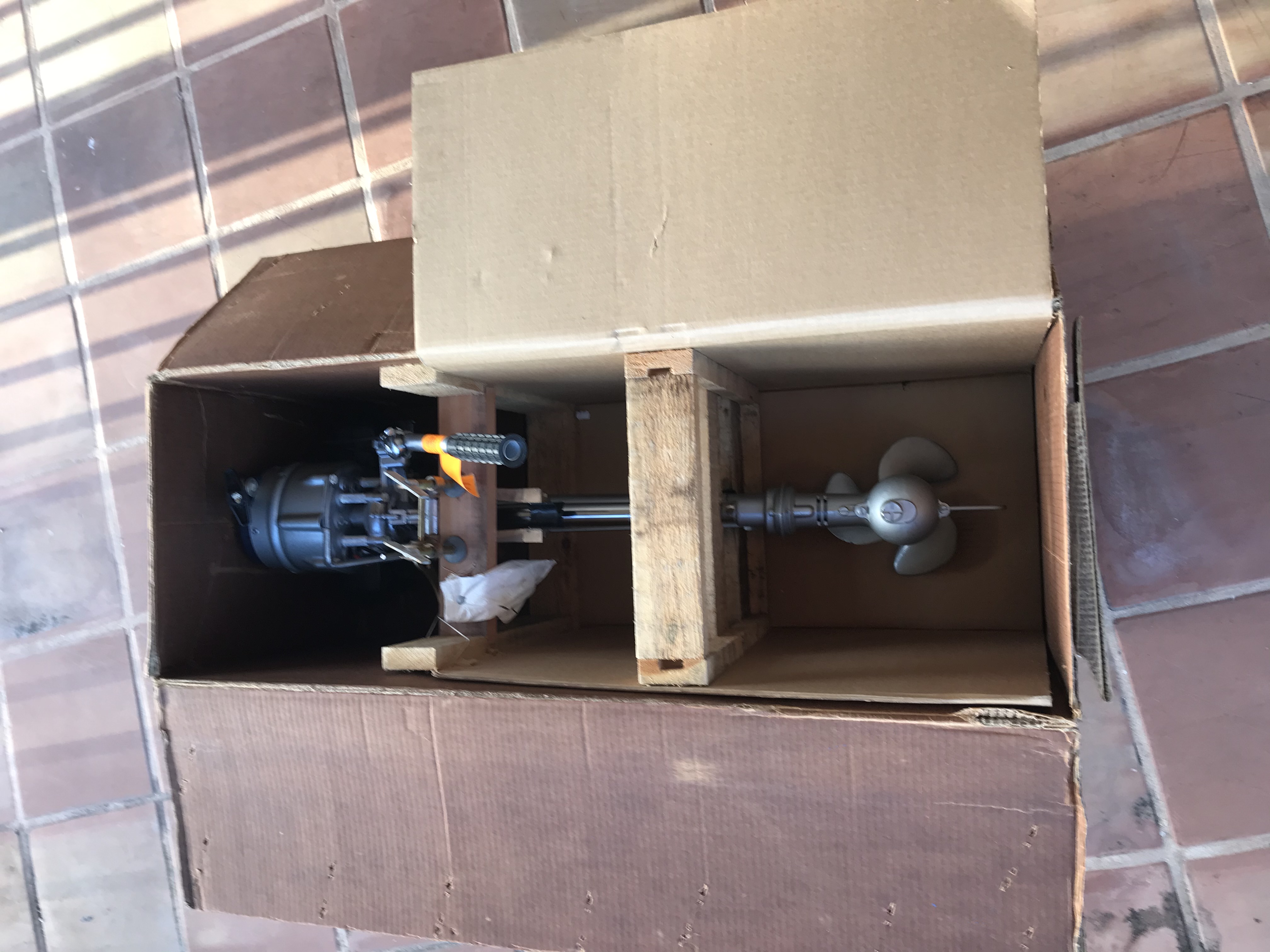 Thought I would share some photos with the site, as I don't recall seeing any of these later cardboard box pictures posted. Unfortunately they are not the best pics of the motor itself, because I didn't want to extract it from the box until I decide the future of the gull (store, sell, display, or even use!).