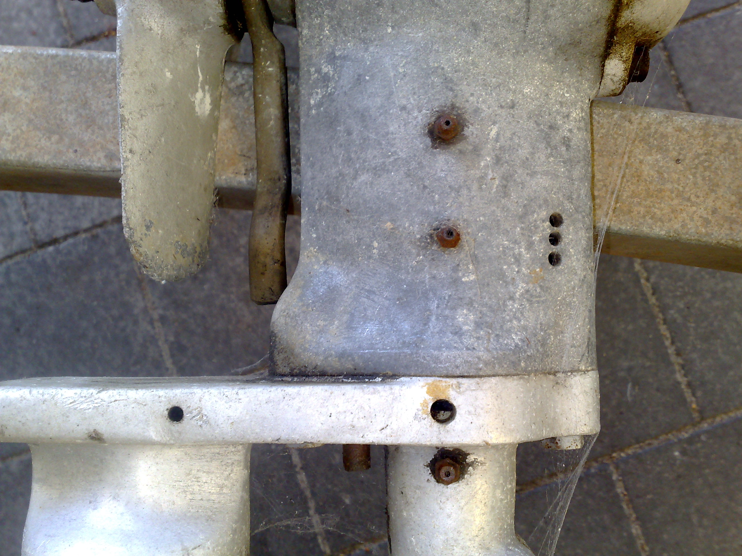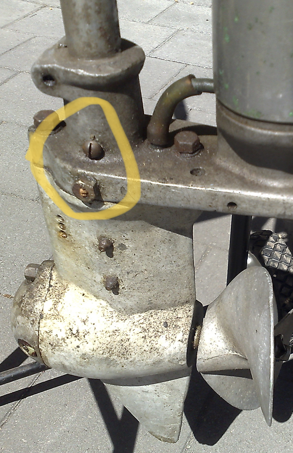The two screws are not standard. The top screw should be lubrication nipple and the bottom screw should not be there at all.