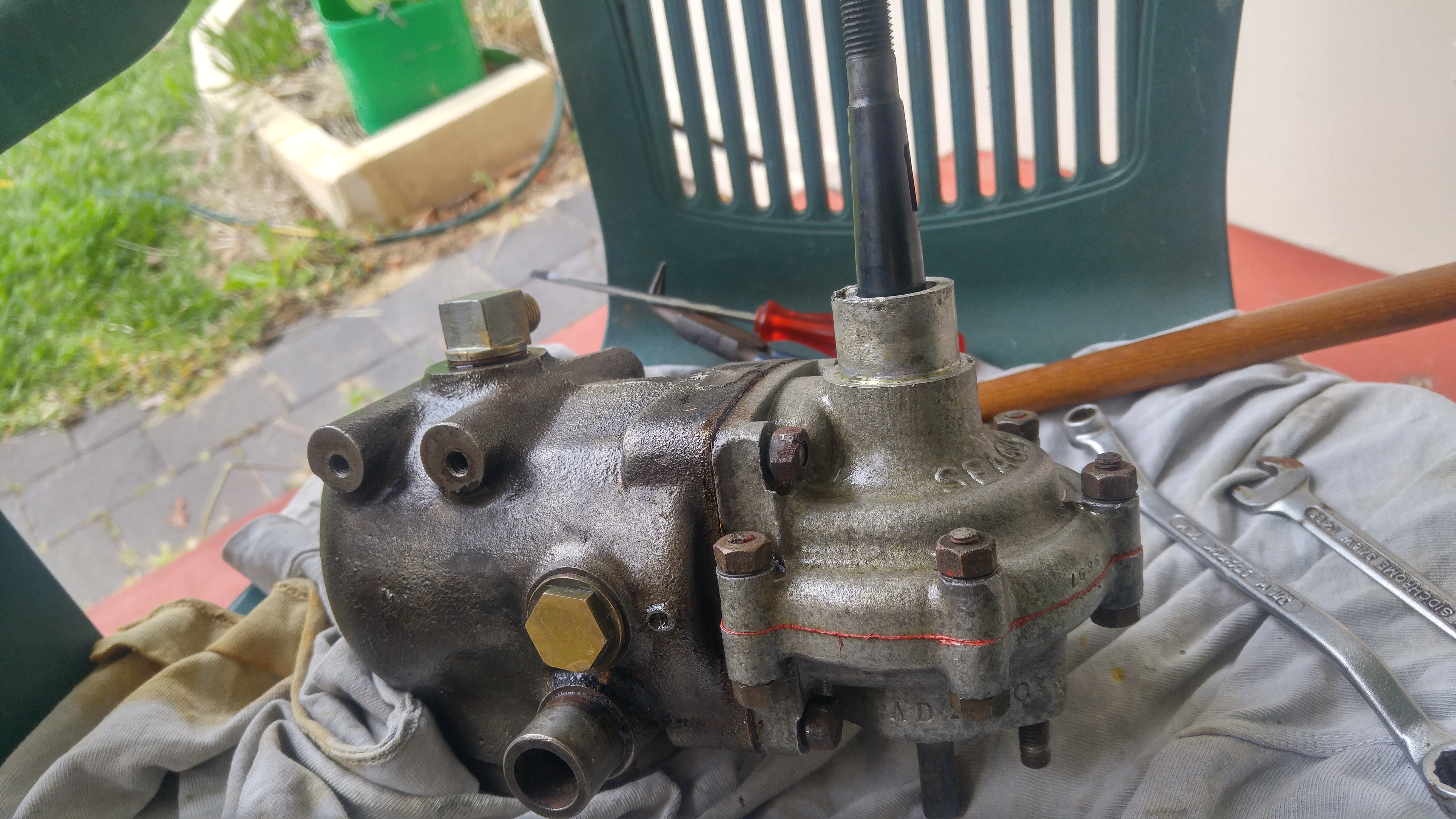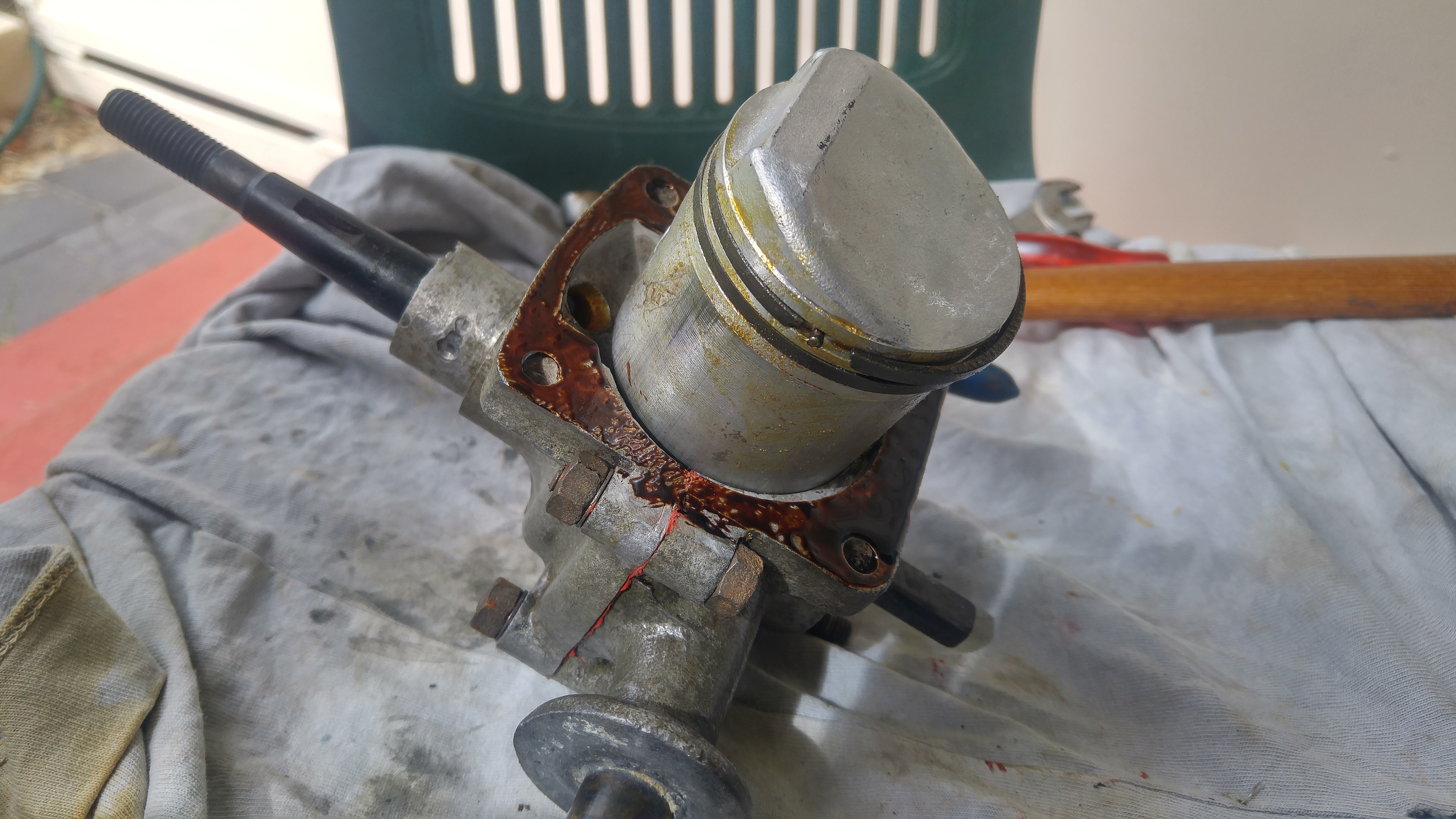 Looks like piston is stuck in there pretty good. Hopefully a bit of soaking and some elbow grease get it out. Can be a tricky job on the single piece 102 cylinders!