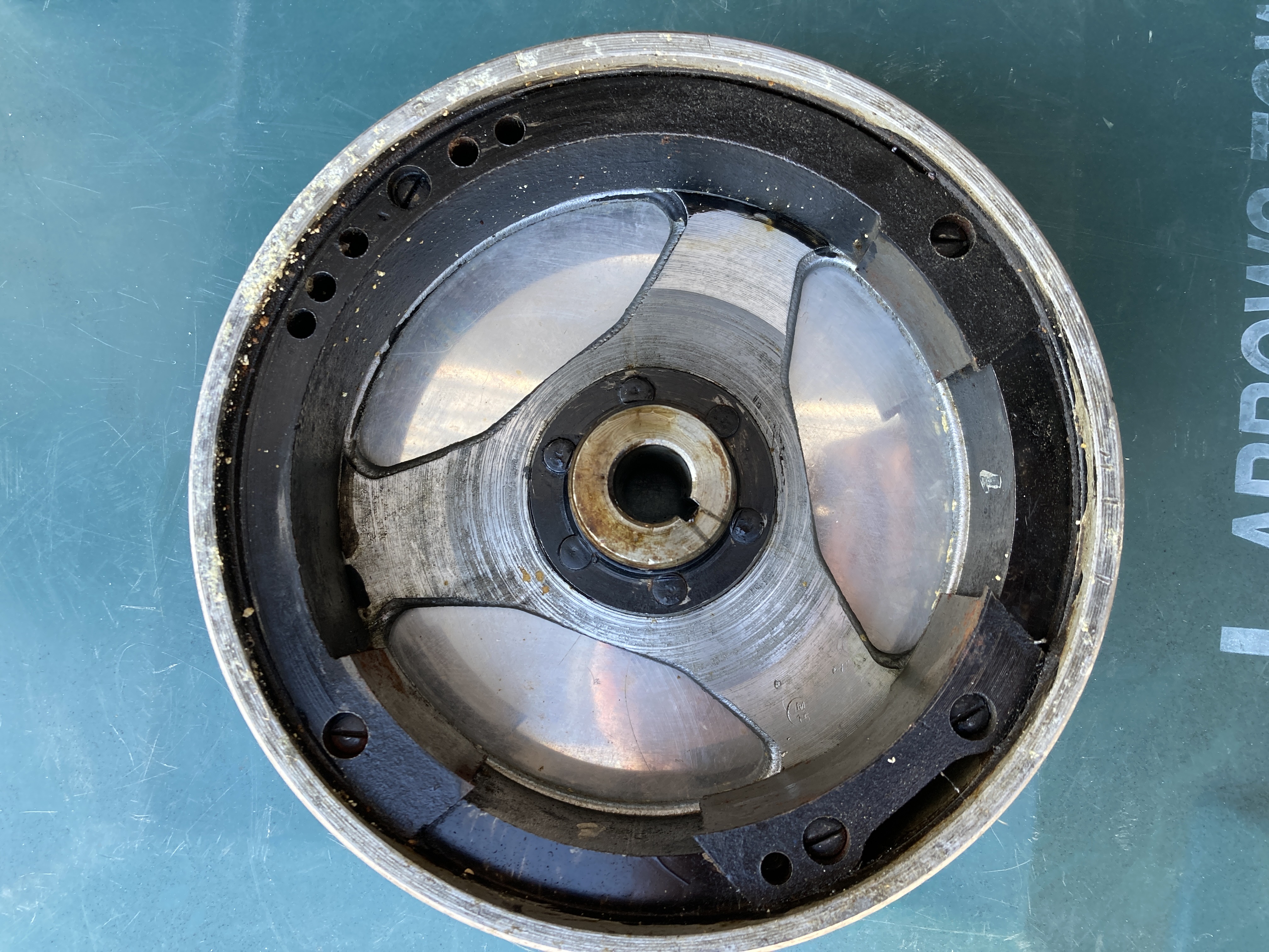 Here is what it looks like. What is the best way to safely remove some corrosion found on the magneto base plat and the flywheel?