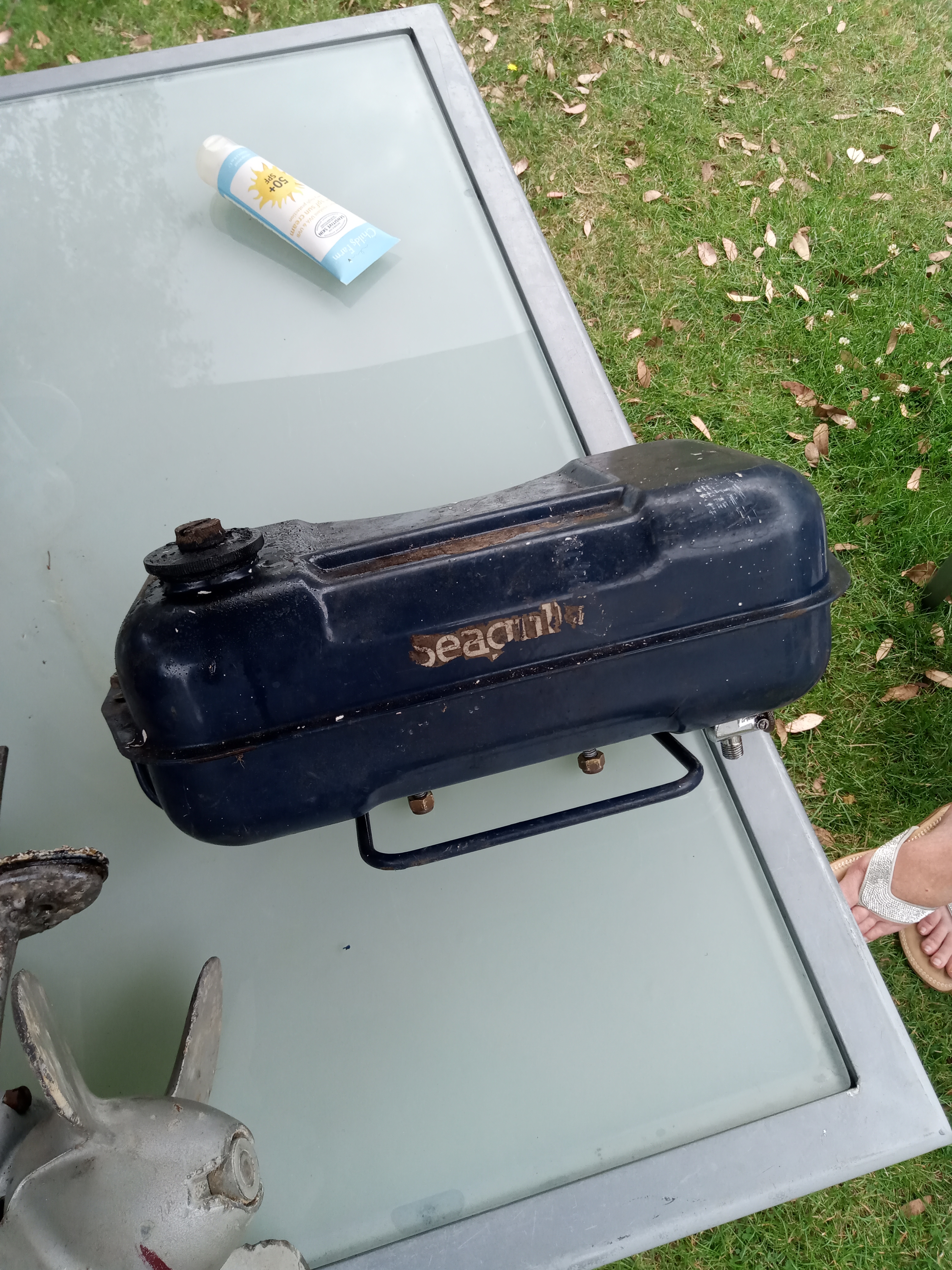 Yes definately the Amal carb,the 'finish' on the exhaust is different to that in the picture of this unit on the SOS website taken over 20 yrs ago, very similar to the ceramic wrap used on many custom cars and bikes.The craft this unit was fitted to was wooden with the immersed portion of the hull fibre glassed over and luckily the adaptor plate bolted through and not incorperated in the hull with neoprene gaskets making the seal between the power unit ,the adaptor and the FNR gearbox.The gearbox must have suffered some damage previously because the fixing flange has been welded in one place and an aluminium fin ,an obvious afterthought, fitted to the hull forward of the gearbox to afford additional protection in the event of grounding.The Seagull fuel tank was remotely mounted but is shaped as if to fit around the top of the engine but there are no obvious fitting points and I have yet to find a picture of one of these engines with the particular tank fitted!!!