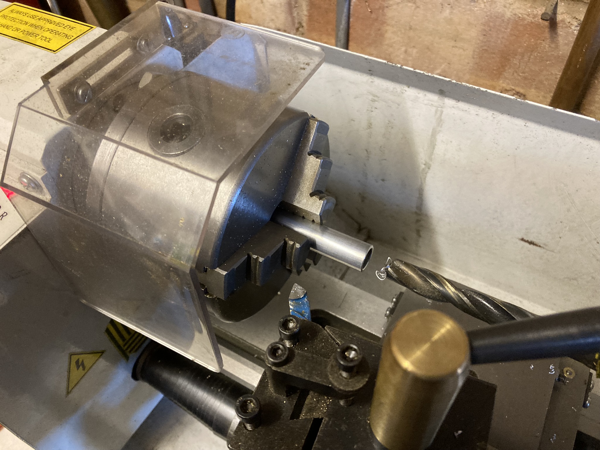 Next job was to give the crankcases a bit of a clean, and replace the tiller stub which had sheared. The original was made from monel, which is hard to find, luckily a brass SD one is identical. The treads in the crankcase for the tiller stub needed a light clean up by passing a tap through.