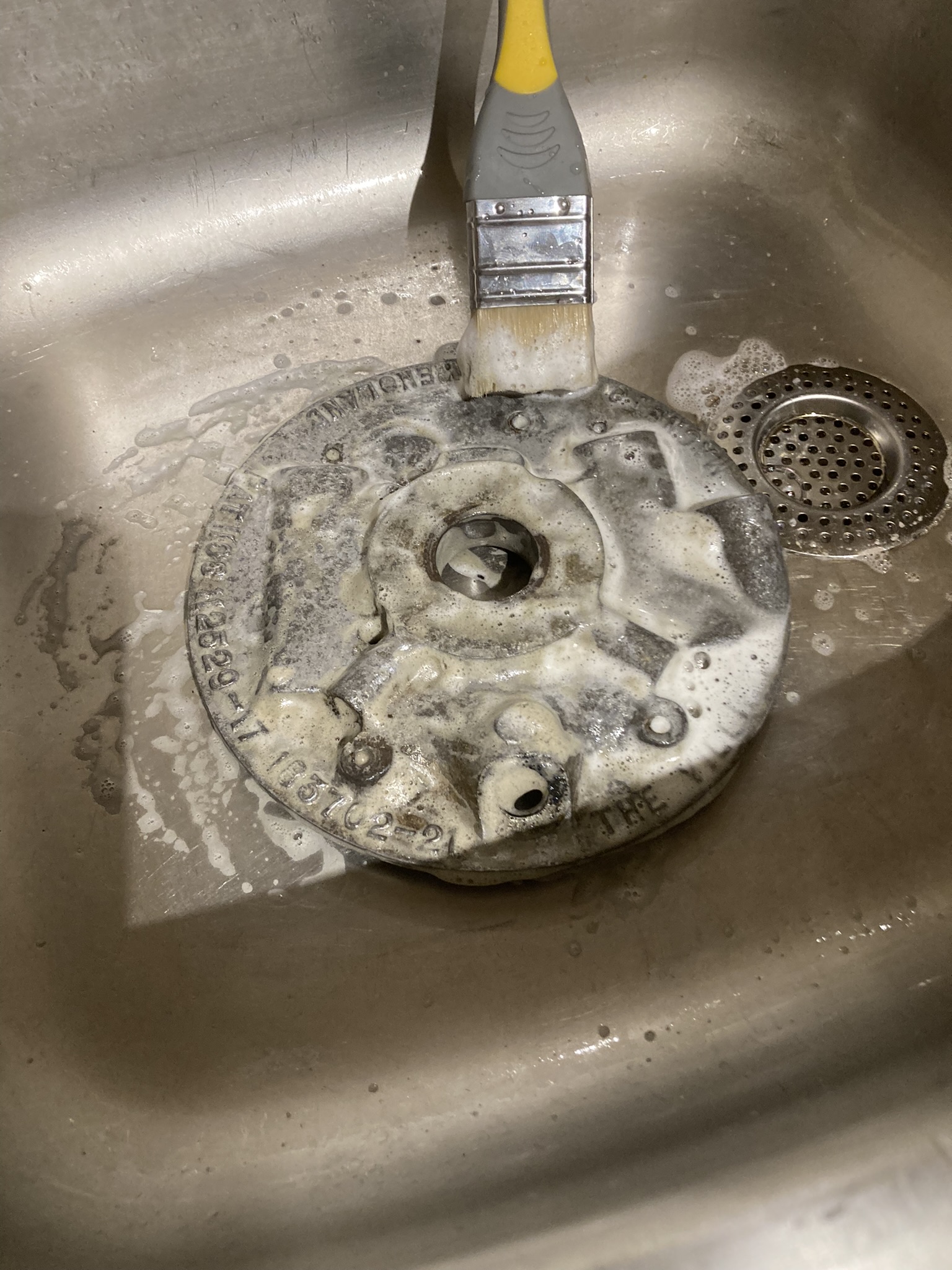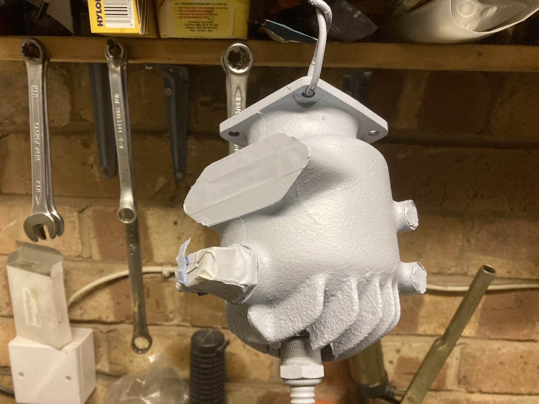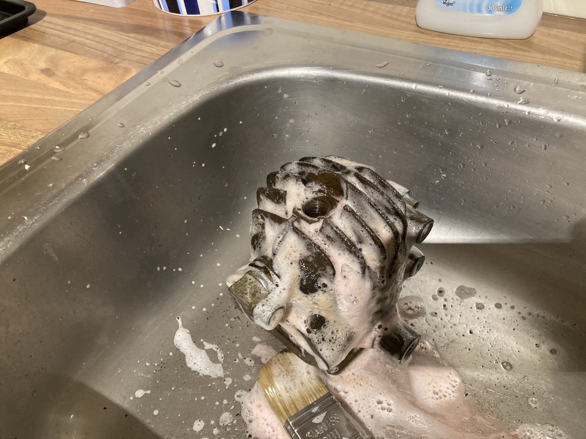 Next job after sorting out the transom bracket was to restore the rusty cylinder. A good degrease using washing up liquid and hot water, followed by a flush of the waterways.