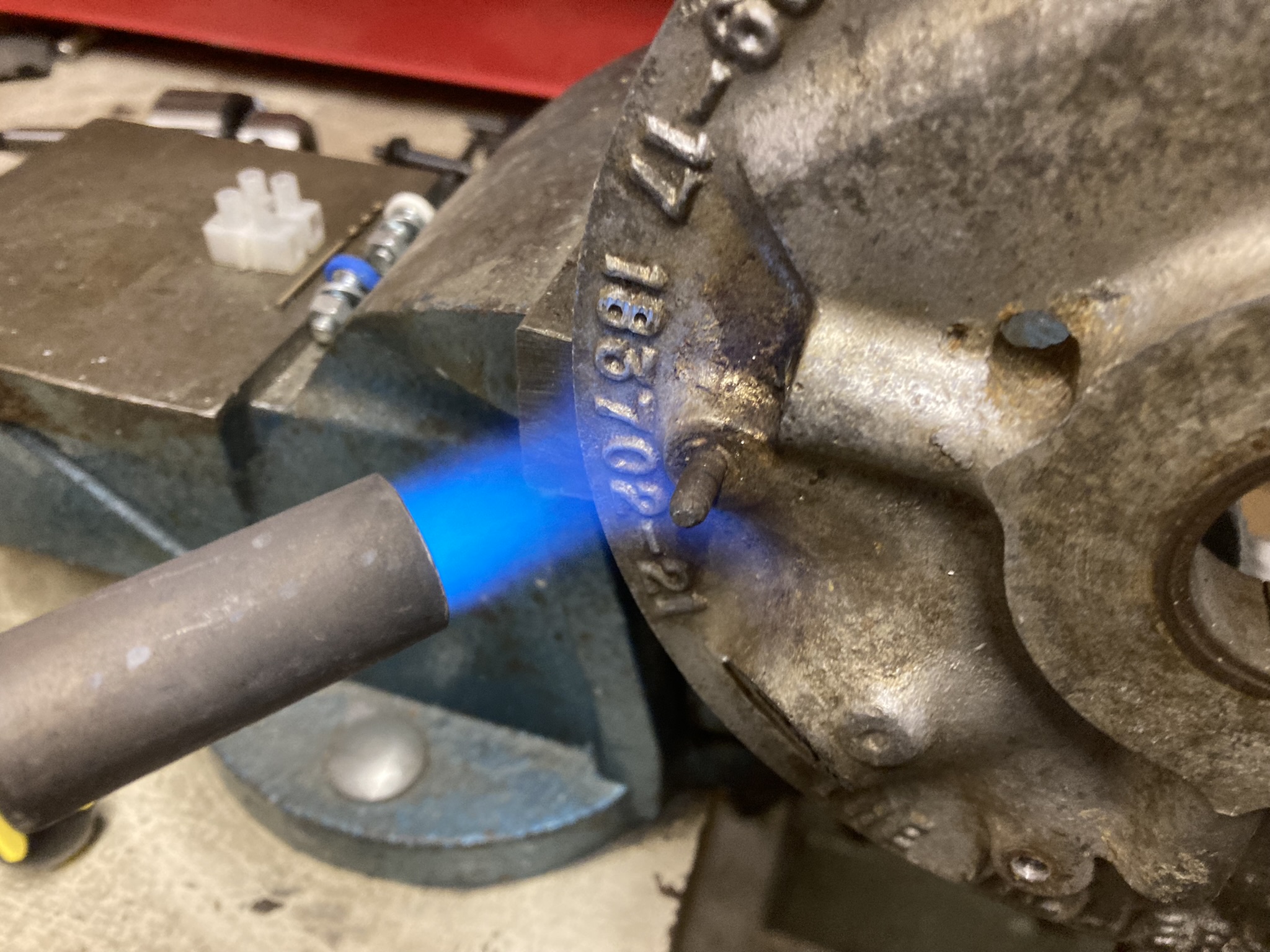 Next job was to strip the magneto, all fairly routine as its the same as later engines. The coil was of course dead, but new ones are available. Its always a good idea to apply a little heat, as a steel thread in an alloy casting will most like be seized. I even have a tiny torch with runs on lighter fuel, similar size to a big cigar