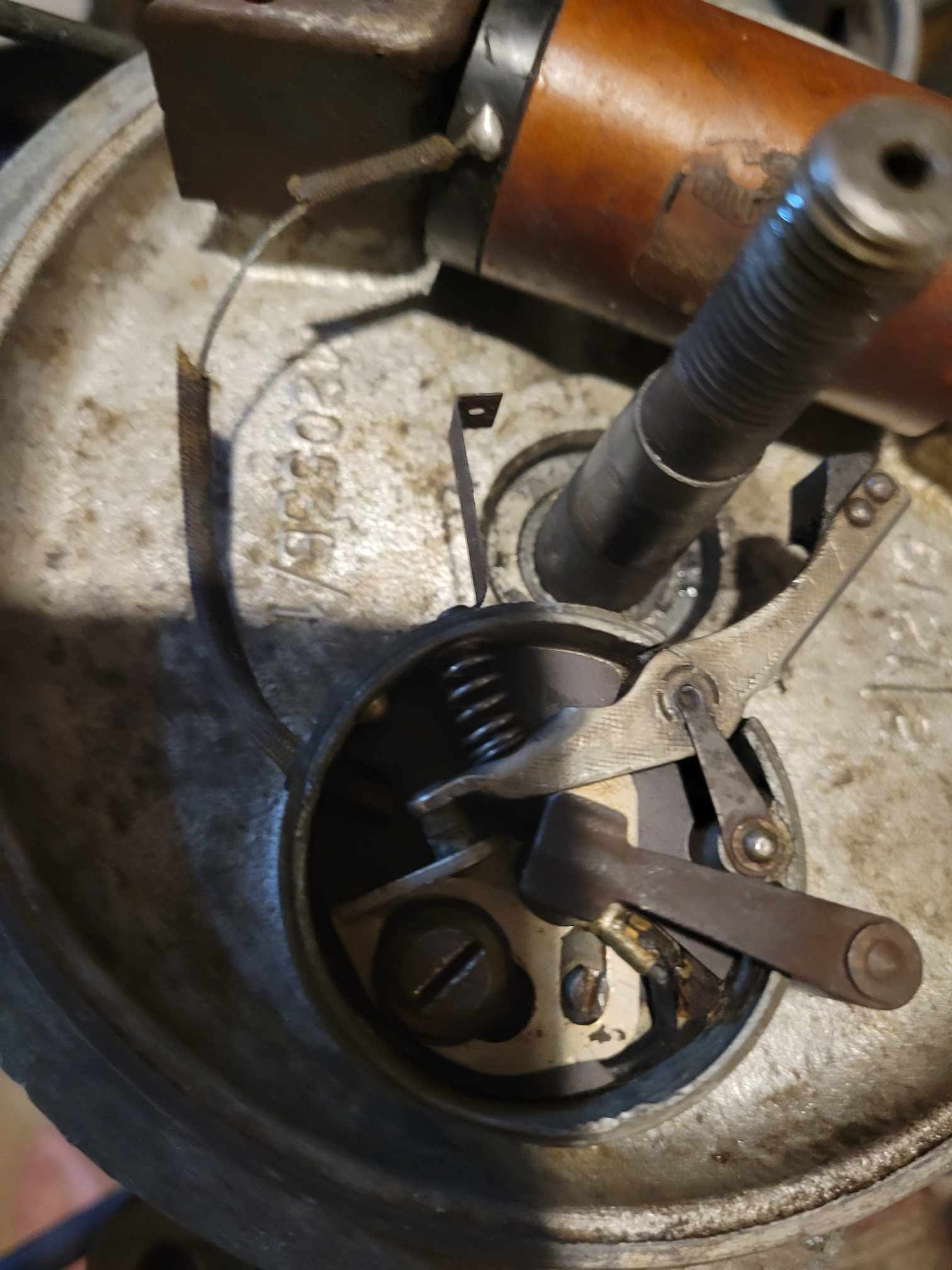 HI all, I've picked up a 102 with no spark, have tried the drill trick but no go yet. However I'm wondering about the 2 levers that run on the flywheel cam - the one that opens the points looks ok, but the other has something missing off the end of it (bare metal arm now)...