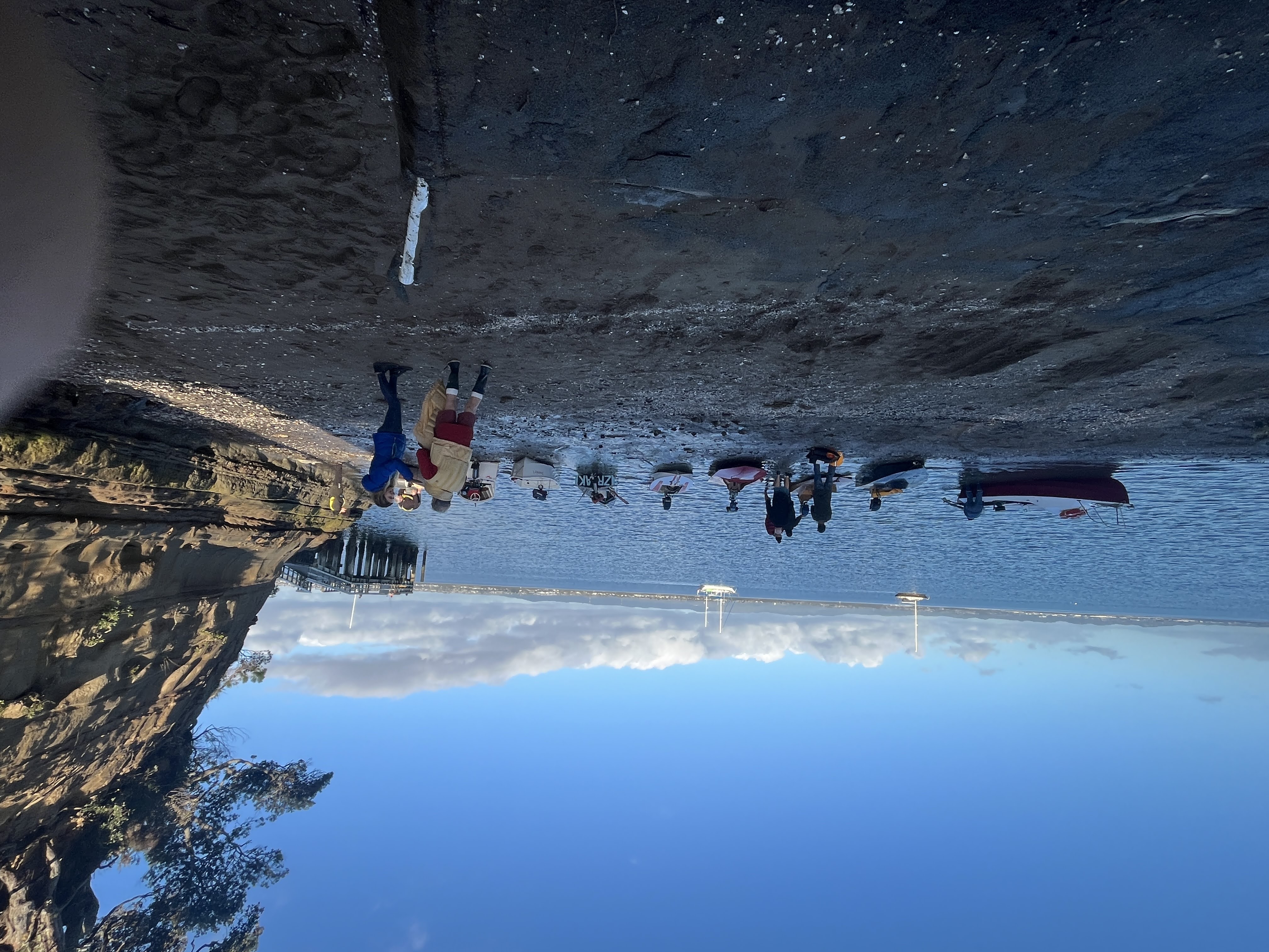 The rocks at the Island Bay Road boat ramp were as slick as snot on a doorknob (yummo), with a couple of people nearly ending up back in the water, sans boat. Jandles and crocs were the shoe of choice for staying upright, and were much better than lace up sea boots. The shoes of choice were dive booties, both for running around like three year olds, and for filling up to keep our toes warm and squidgy.