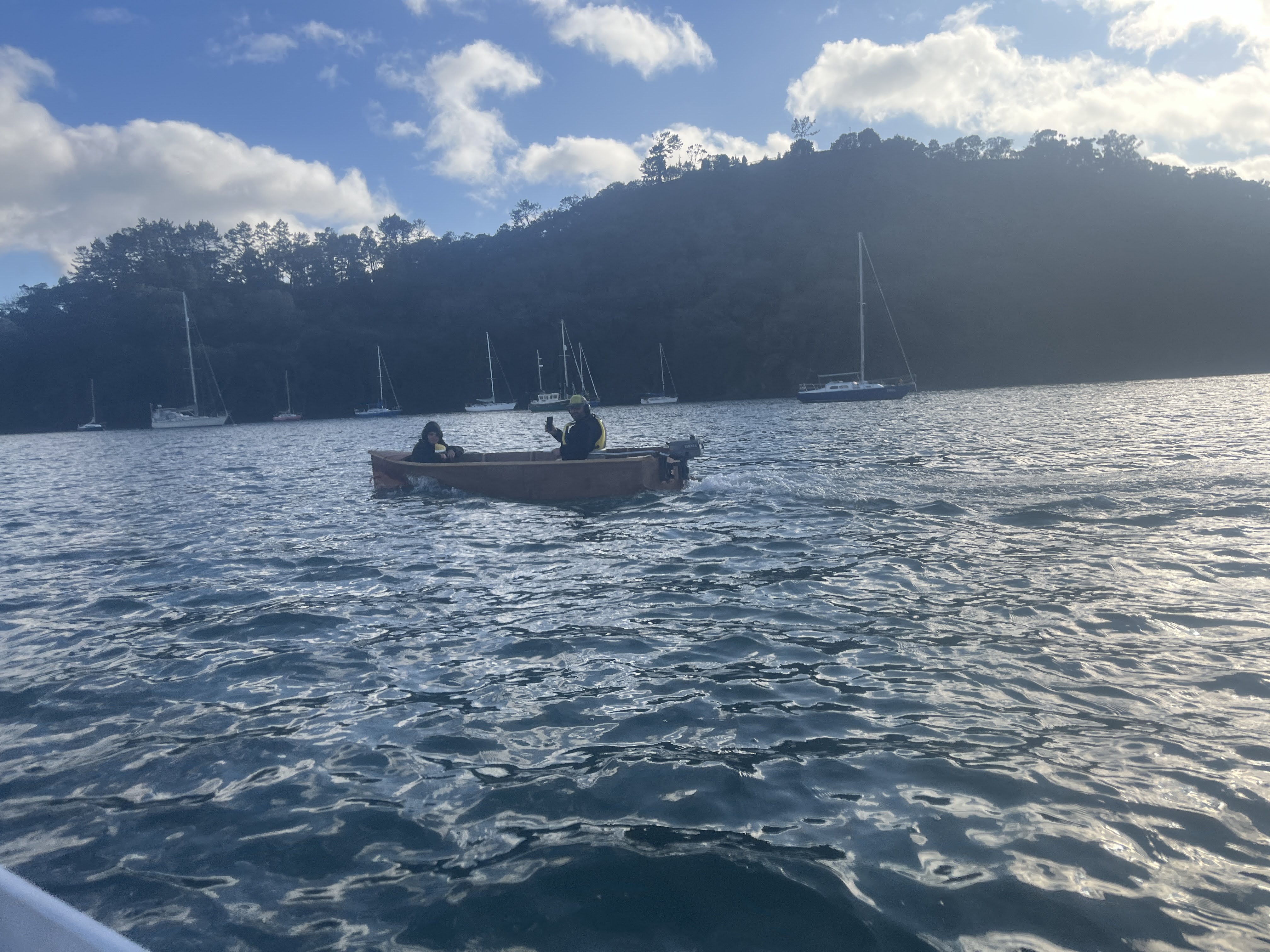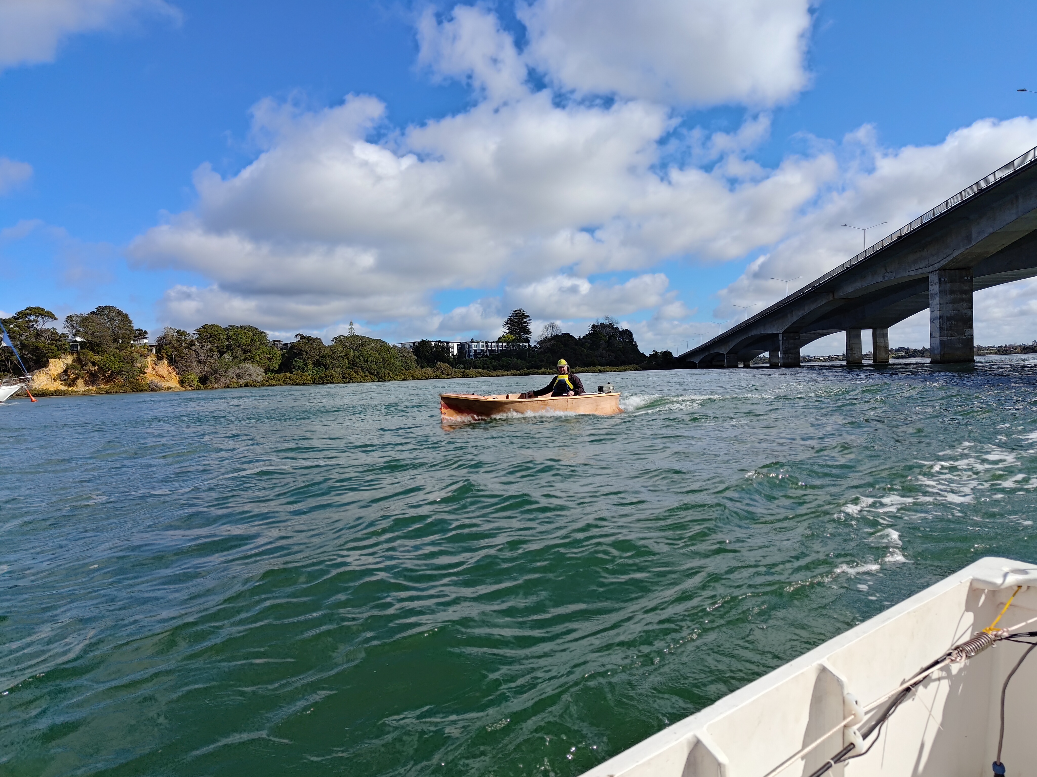 We left at about 12.30, heading back towards Beach Haven. Of course, nothing can go exactly to plan! It was smooth sailing until Greenhithe, where it was wind against tide and got rather choppy. Nothing that our avid group of boaties couldn’t handle, but it certainly added some extra challenges. One boat took the opposite side of the harbour to the rest of us in an attempt to get some more shelter. This meant, however, that he had to rapidly cross the roughest part of the harbour to join back in with us, but he had a following sea, so this didn’t last toooooo long. Another boatie turned too soon and attempted a quick detour to Greenhithe instead of heading towards Herald Island, and had to be chased back on route, adding another 1.7km to his and his follower’s journey. With nearly everybody back to Island Bay Road, another boat (a Red Hartley Trailer Sailor) decided that they hadn’t had enough of the rough water and added on an extra joyride, heading towards the Auckland Harbour Bridge.